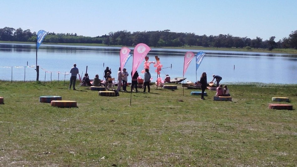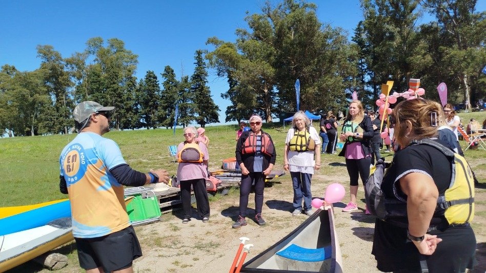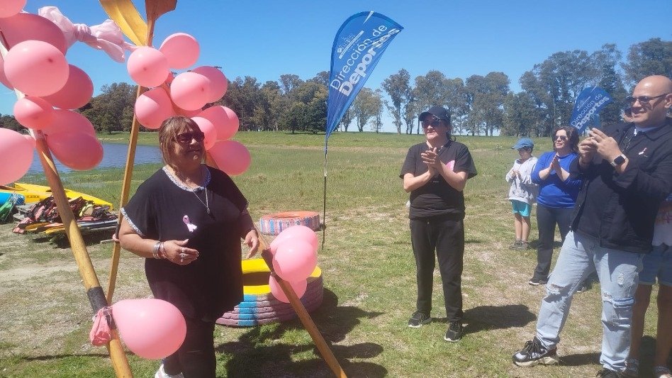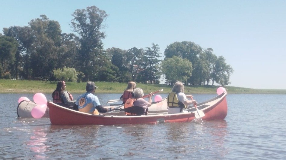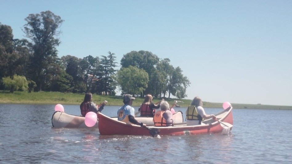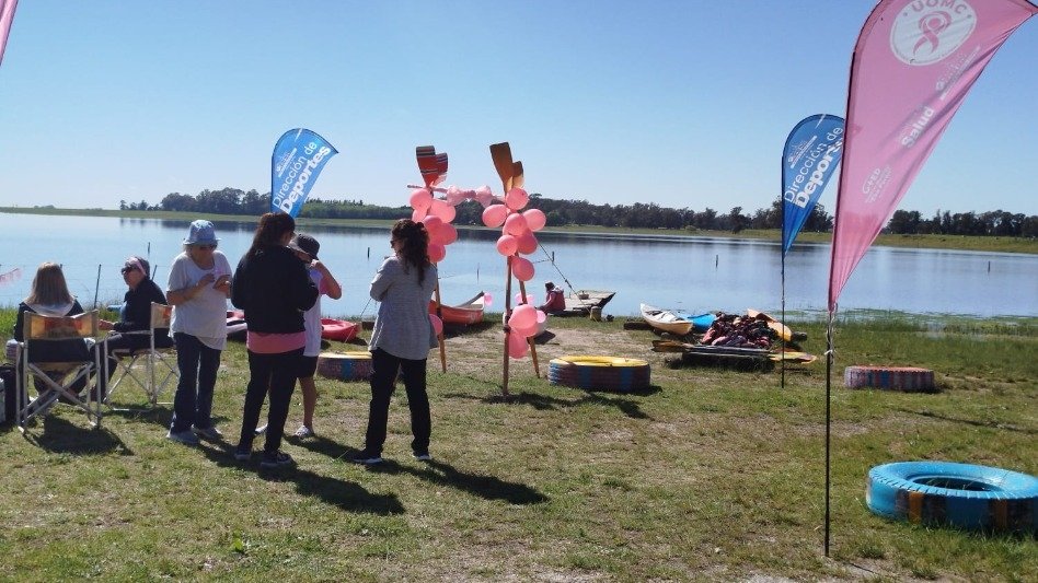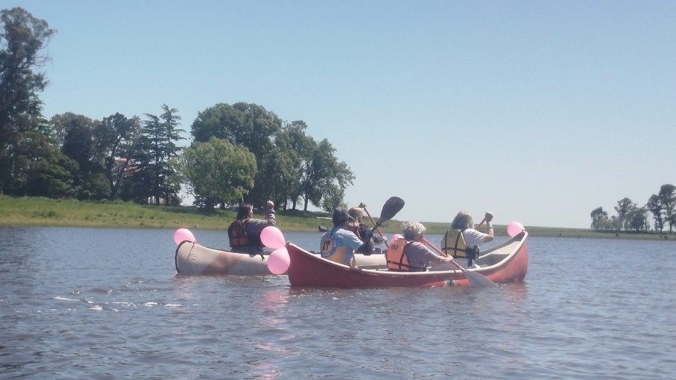 Este sábado por la mañana, en la Laguna San Antonio, el equipo de canotaje rosa realizó el bautismo de su nombre: "Rosas de San Antonio", en el marco del mes de concientización sobre el cáncer de mama.