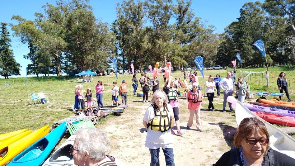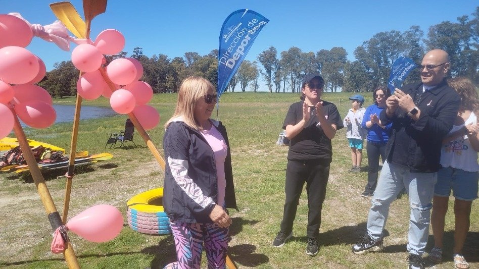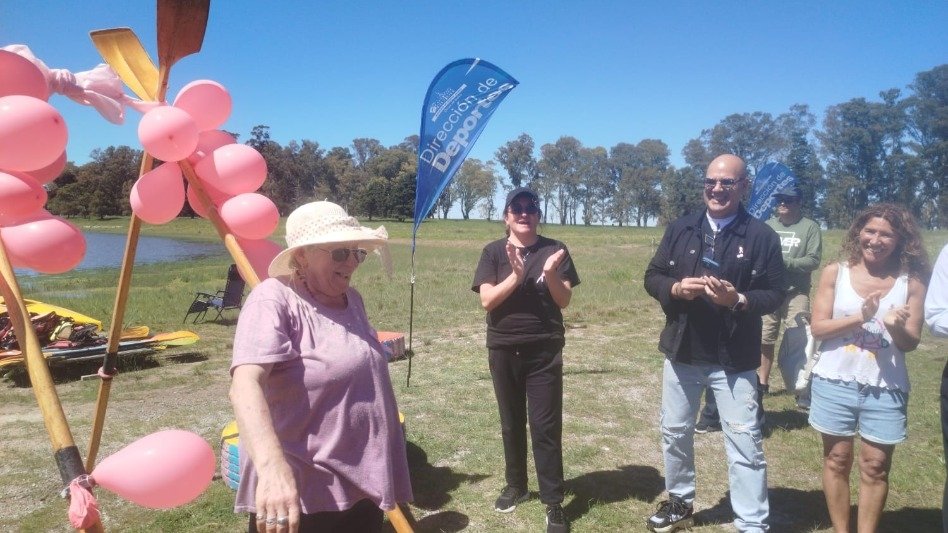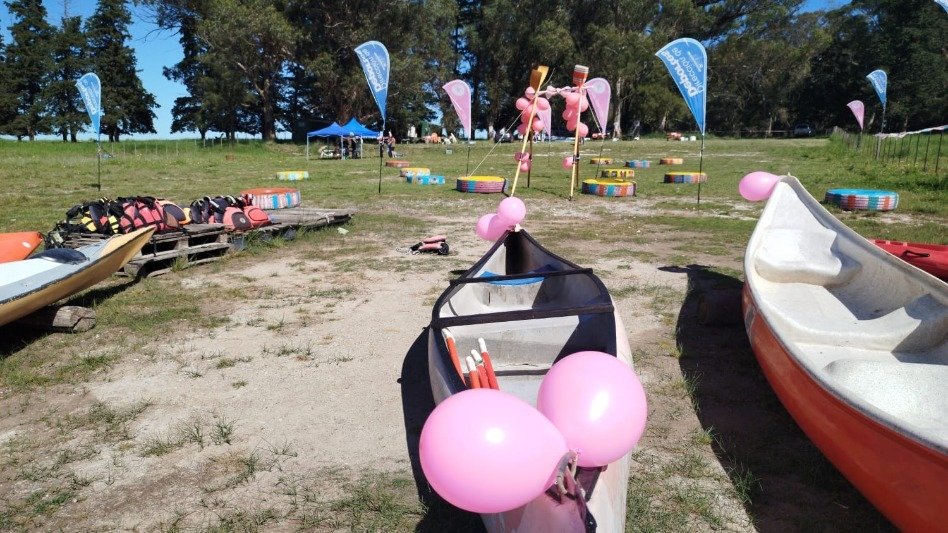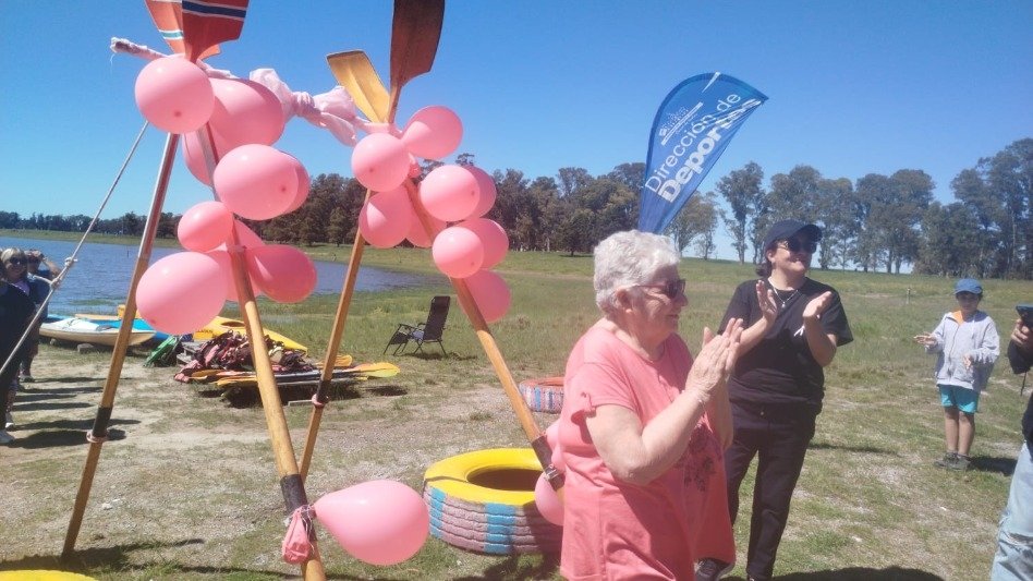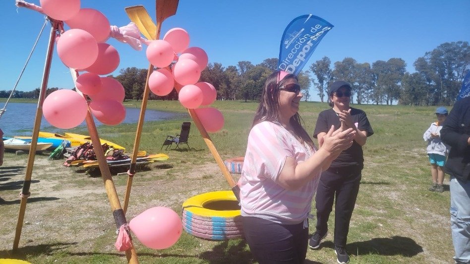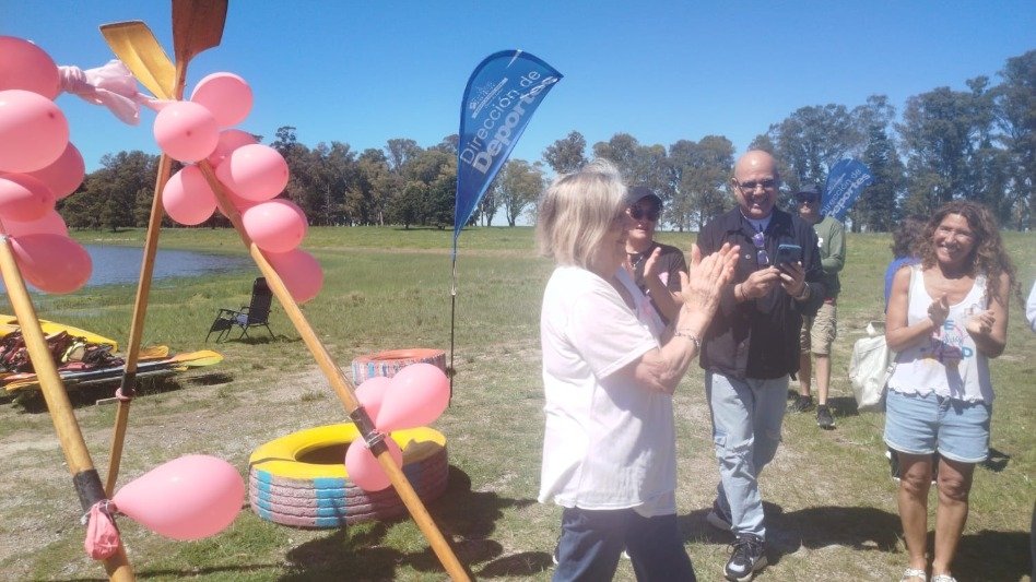 Este sábado por la mañana, en la Laguna San Antonio, el equipo de canotaje rosa realizó el bautismo de su nombre: "Rosas de San Antonio", en el marco del mes de concientización sobre el cáncer de mama.