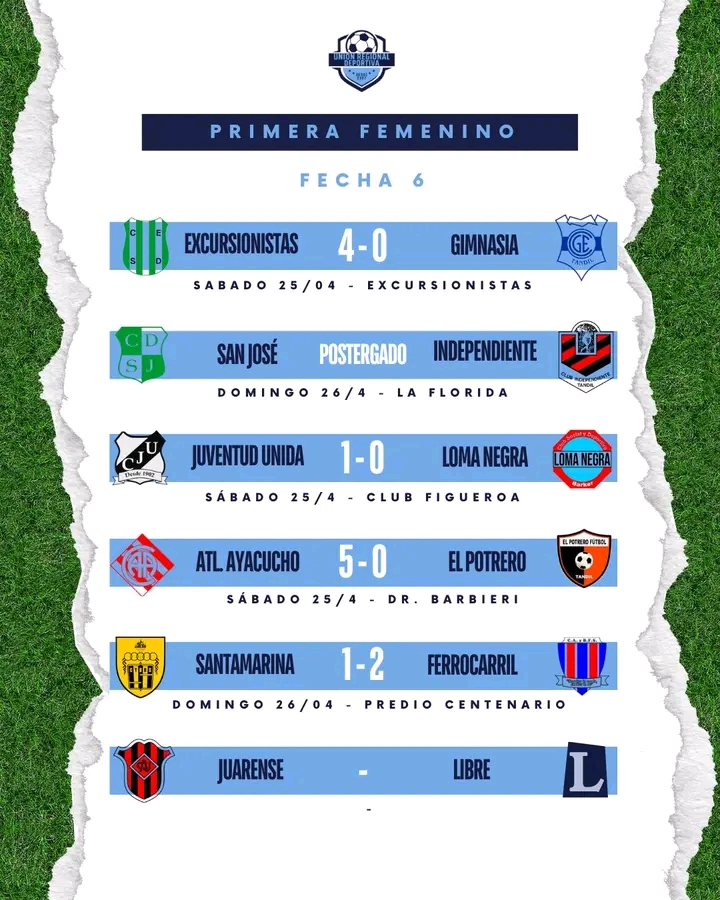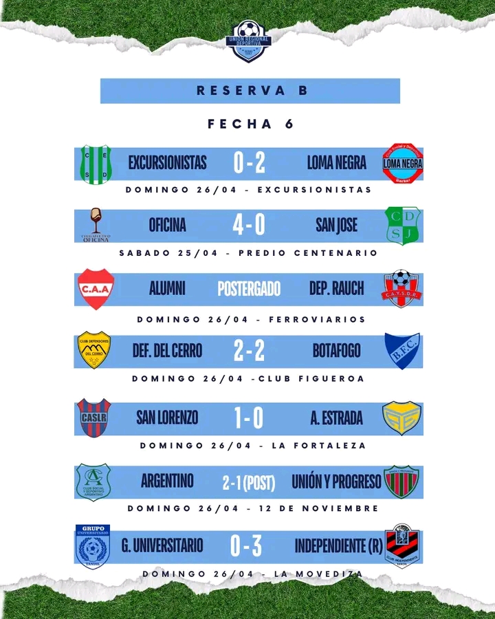 Siguiendo con la 6ta fecha se jugaron la mayoría de los partidos y en Primera A, Juarense visitó a Gimnasia de Tandil con victoria en Reserva y empate en uno en Primera, después de ir en desventaja.