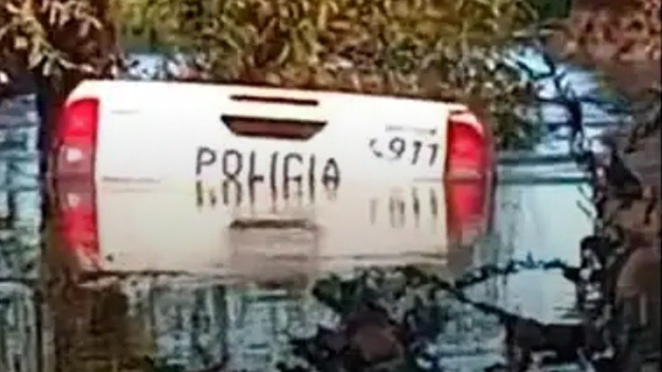 Tras lograr salir del habitáculo, los funcionaros debieron aferrarse a un árbol, en el cauce para no ser arrastrados por la correntada.