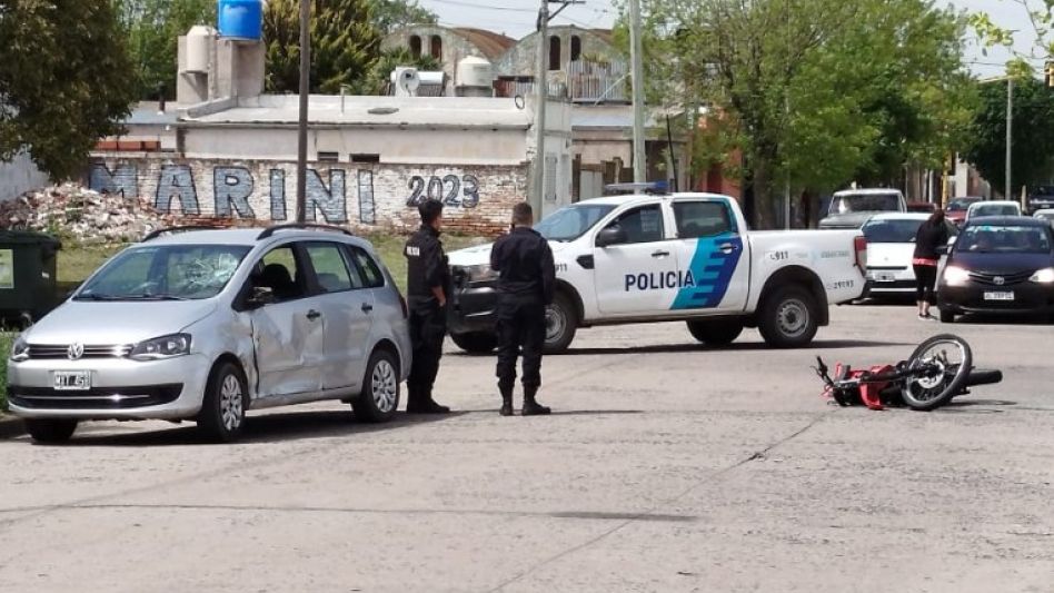 Alrededor del mediodía de este jueves, se registró un accidente se registró en la intersección de Avda. Saavedra y Lavalle. Una moto y un automóvil VW (tipo Suran) se vieron involucrados en un siniestro vial urbano.