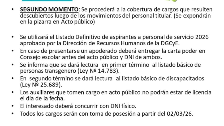 Hoy a las 18 horas se llevará a cabo un acto público presencial en la Escuela Primaria N° 1, destinado a la titularización del personal auxiliar.