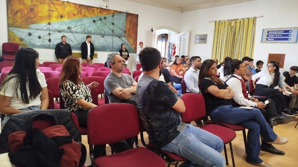 integrantes del área de Bromatología, los inspectores de ETP Juan Manuel Procopio y Adriana A. Hernández, además de alumnos, docentes y público en