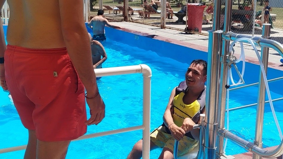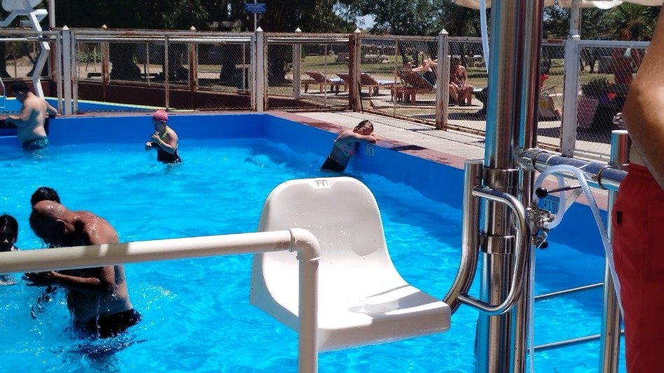 En el día de hoy se llevó a cabo, en el Complejo de Piletas Municipal, la inauguración de un ascensor hidráulico destinado a facilitar el ingreso a la pileta de los concurrentes del Centro de Día Despertares, aliviando además el esfuerzo físico que realizaba el personal auxiliar.
