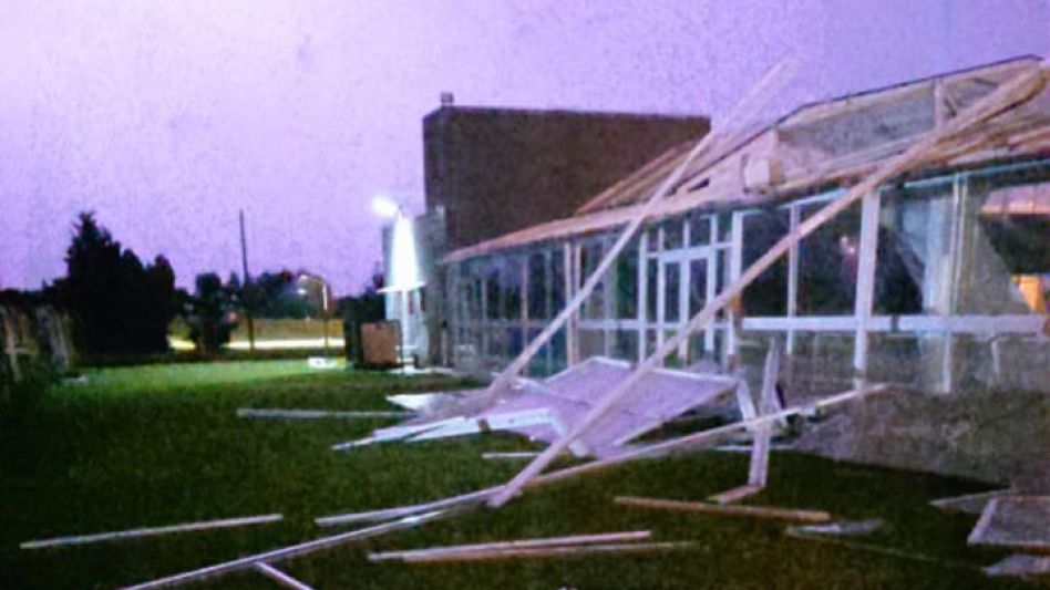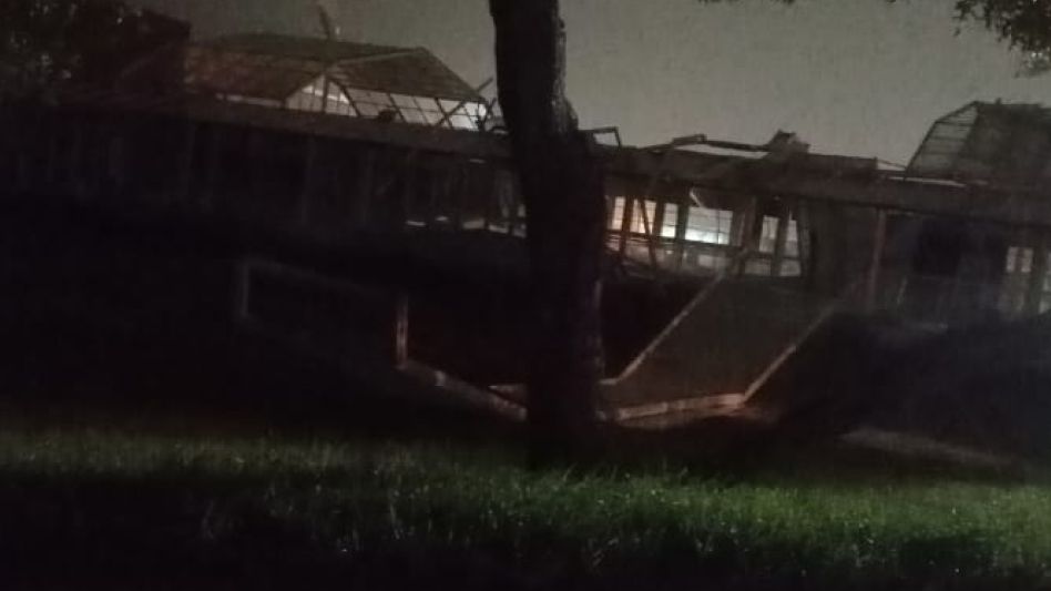 Durante la jornada de hoy, las intensas ráfagas de viento afectaron distintos sectores de la ciudad, provocando daños materiales. Uno de los puntos más comprometidos fue la pileta climatizada, donde el techo se voló por completo a causa de la fuerza del viento.