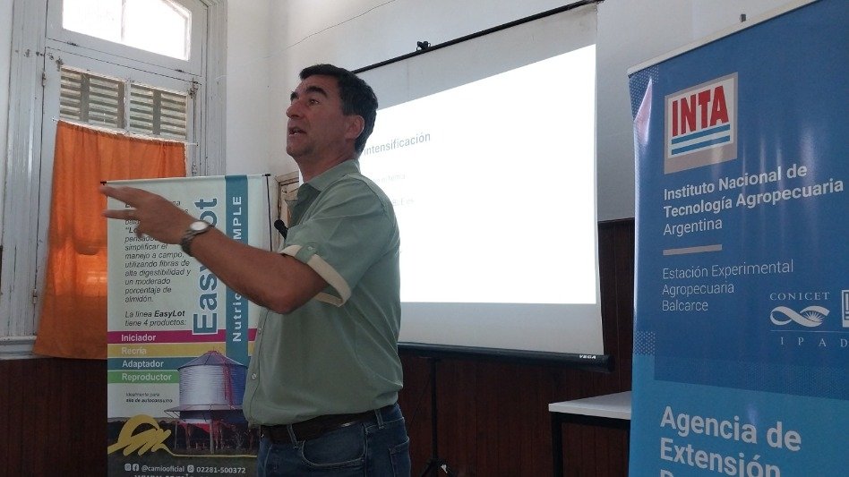 Darío Colombatto presentó ante más de 50 productores y técnicos un análisis preliminar del ensayo conjunto entre la Escuela de Educación Secundaria Agraria Nº 1, Camio S.A. y profesionales de las agencias de INTA Olavarría y Benito Juárez.