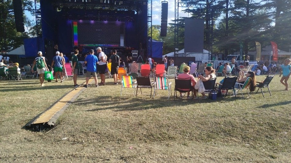 tradicional montaña ubicada frente al escenario principal, con reposeras y