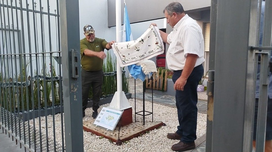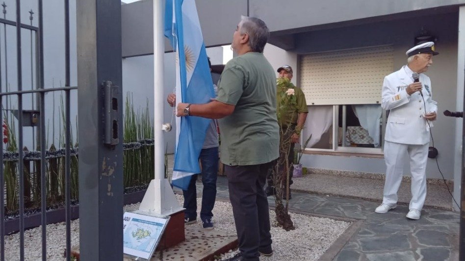 En la tarde de hoy se llevó a cabo la inauguración del mástil y el izamiento de la bandera nacional en la vivienda del SubOfl. Ppal. Ricardo Canale, ex combatiente de Malvinas.