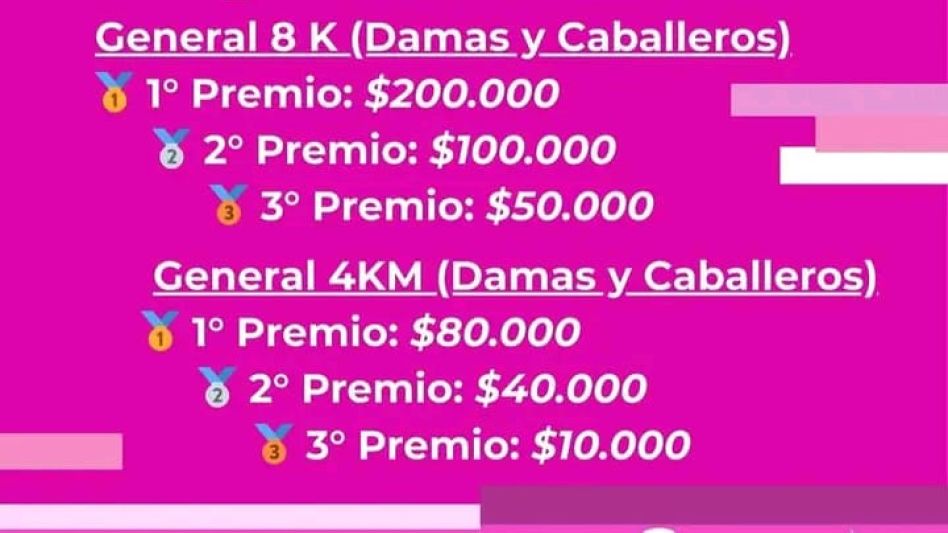 Premios válidos para clasificación general en categoría 8K: damas y caballeros.