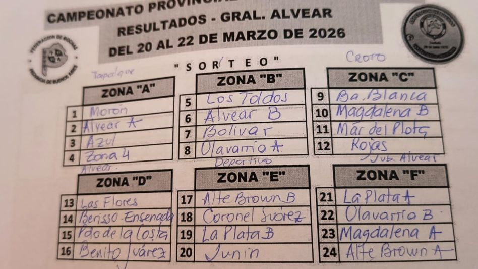 El sorteo determinó que Benito Juárez estará en el Grupo D junto a Las Flores, Berisso/Ensenada y Partido de la Costa.