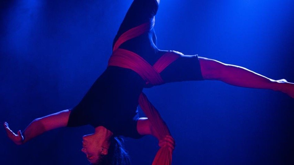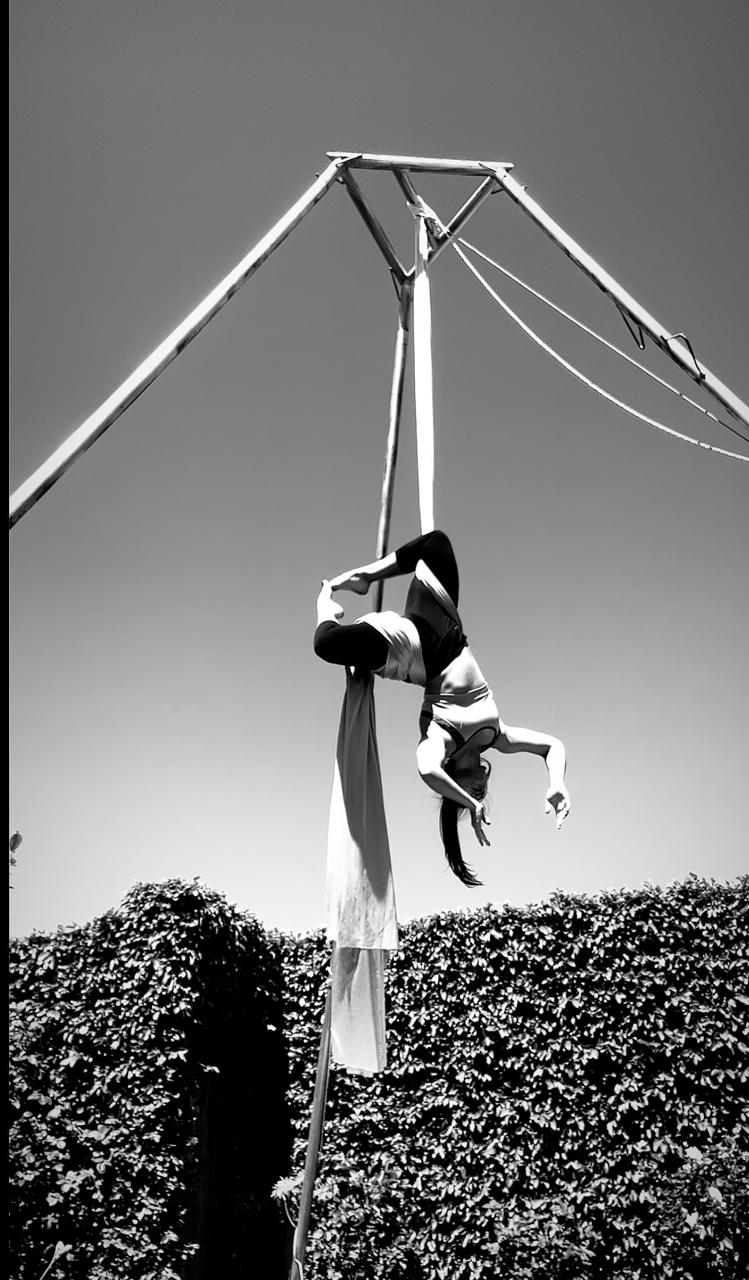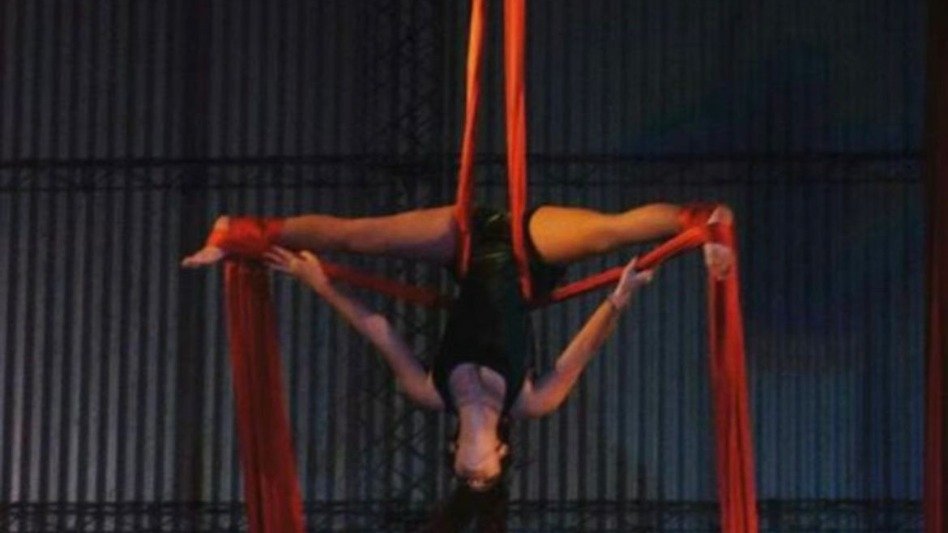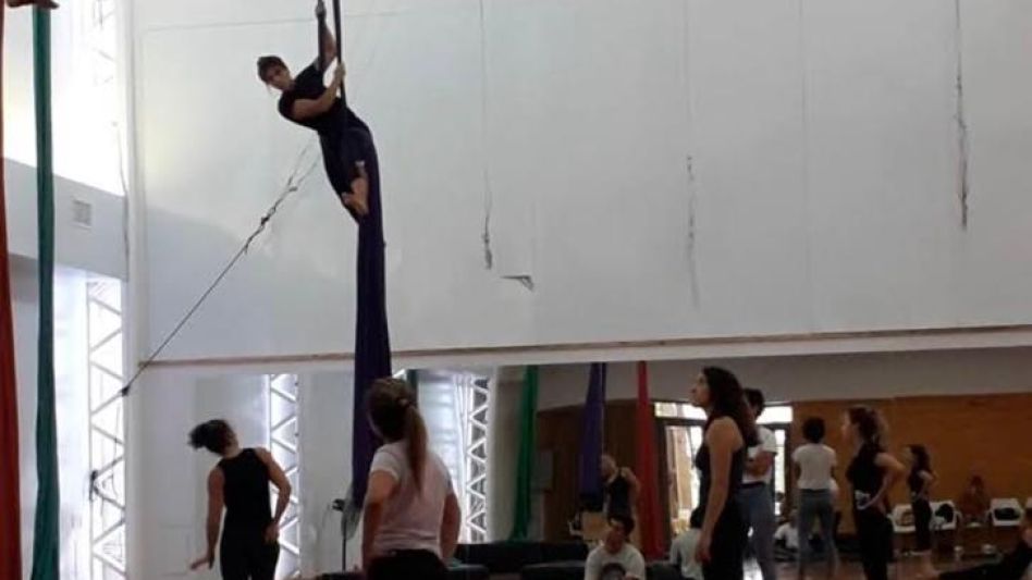 de acrobacias aéreas, y en el espacio donde ensayaban para un espectáculo -la