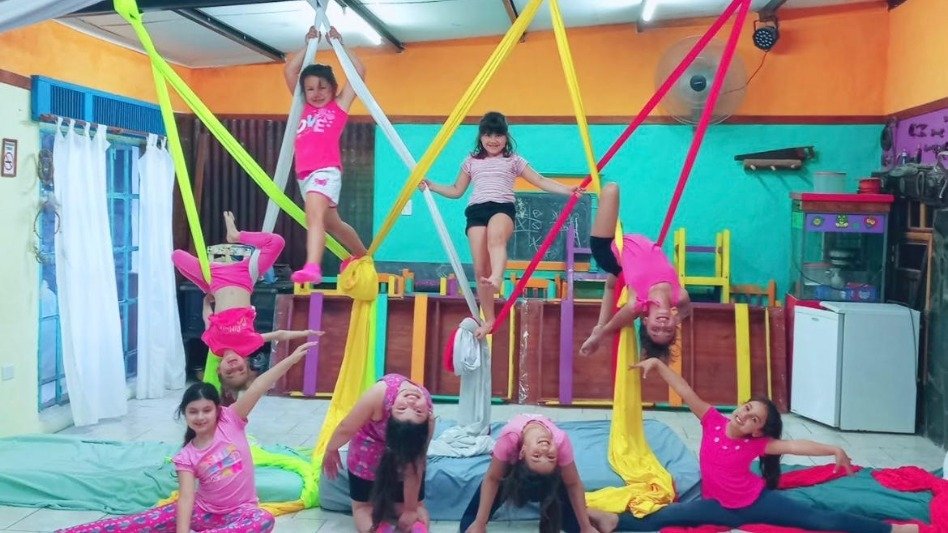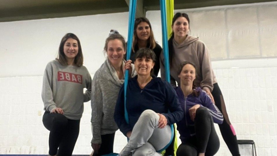 una estructura aérea que compró en Córdoba. Las clases son personalizadas, con