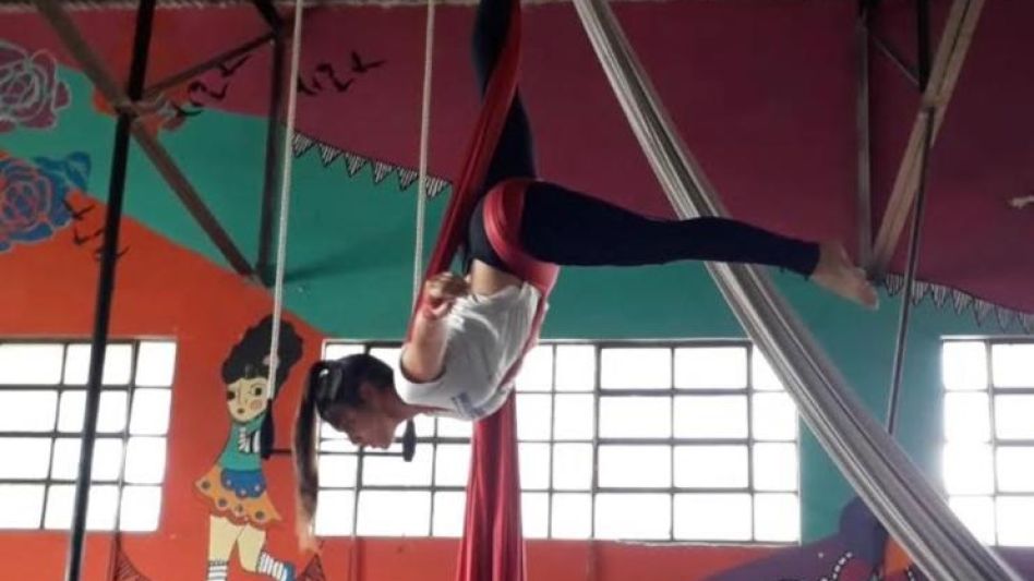 como Instructora en Elementos Aéreos en Buenos Aires, en "Entre el cielo y la