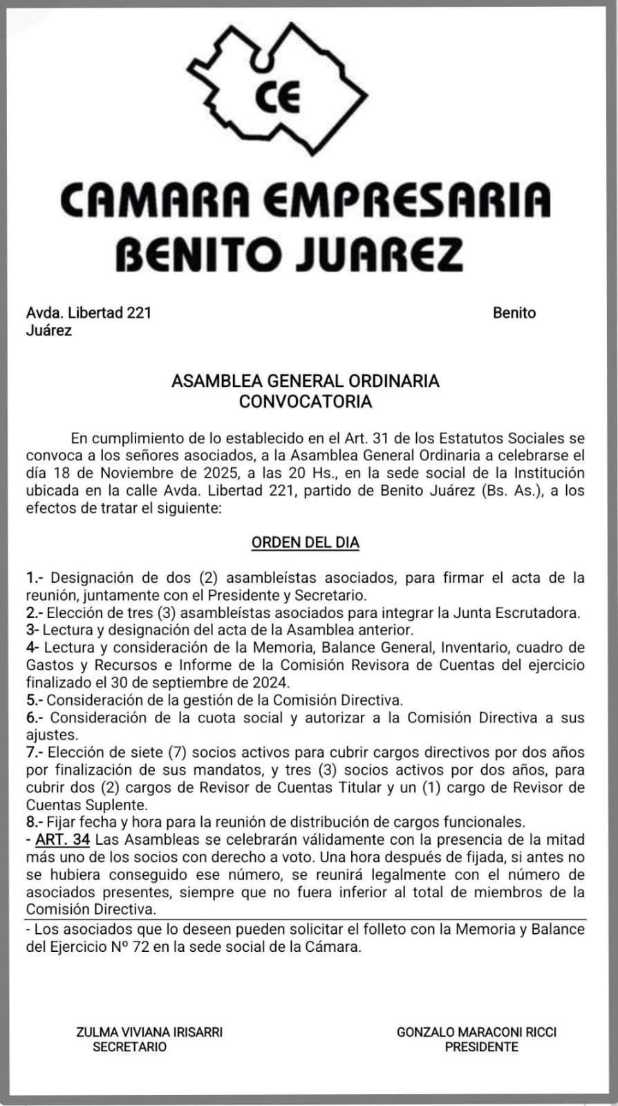Domicilio: Av. Libertad 50 – Benito Juárez -CP (7020) – Buenos Aires – Argentina