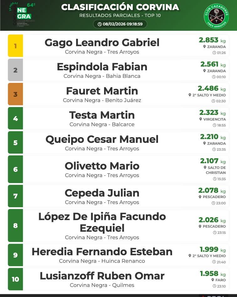 Hasta el momento, el juarense Martin Fauret está clasificado tercero en las 24 horas de la Corvina Negra.