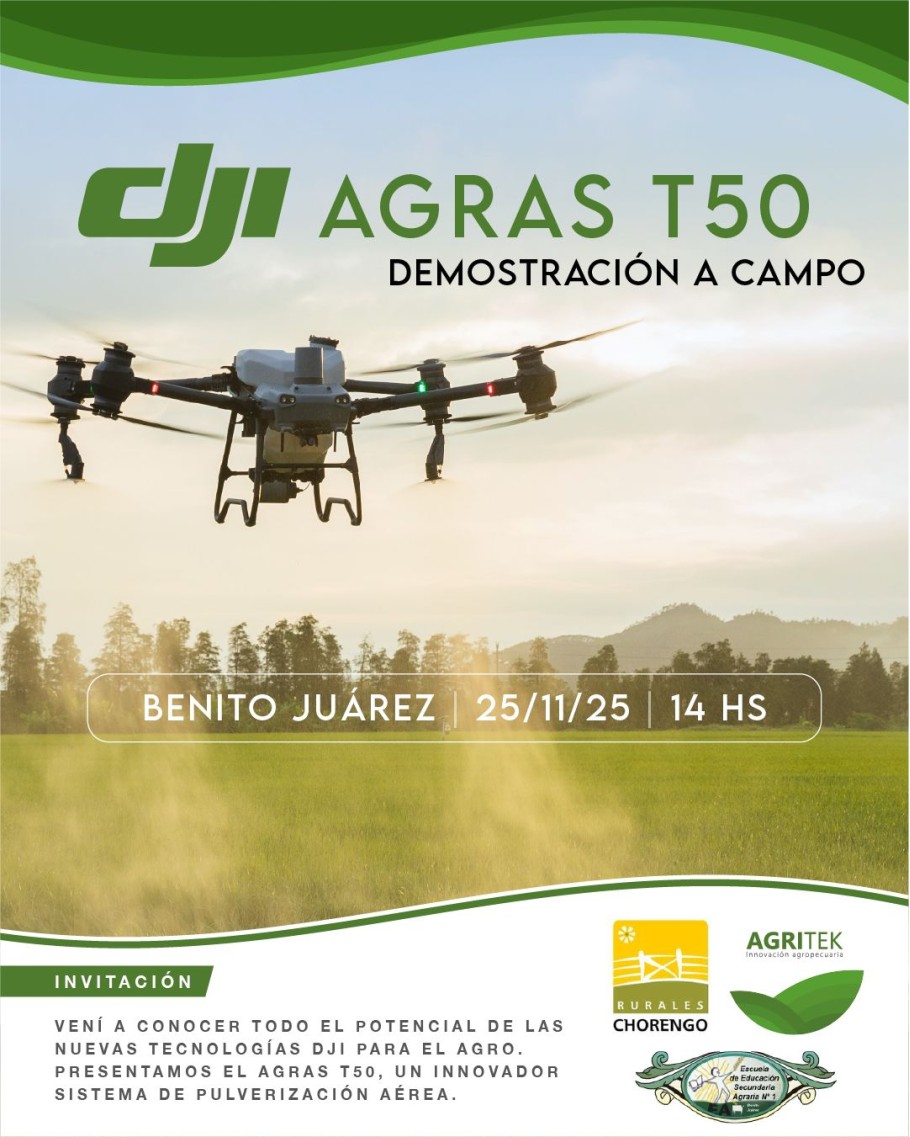 Se realizará una capacitación sobre el uso de drones aplicados al sector agropecuario, con una demostración en el campo. La actividad es organizada junto a Rurales Chorengo y cuenta con cupos limitados.