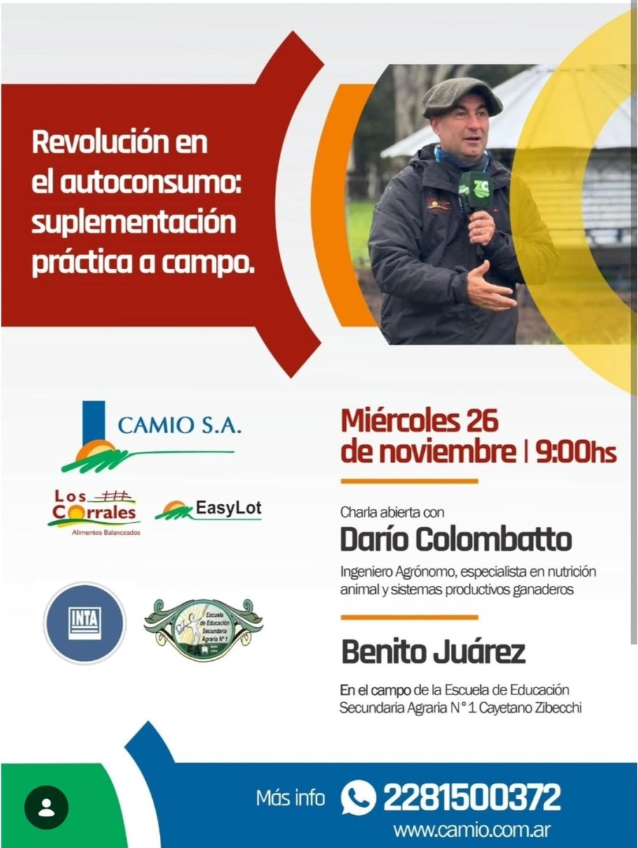 Participará el reconocido Ingeniero y especialista en nutrición Darío Colombatto,