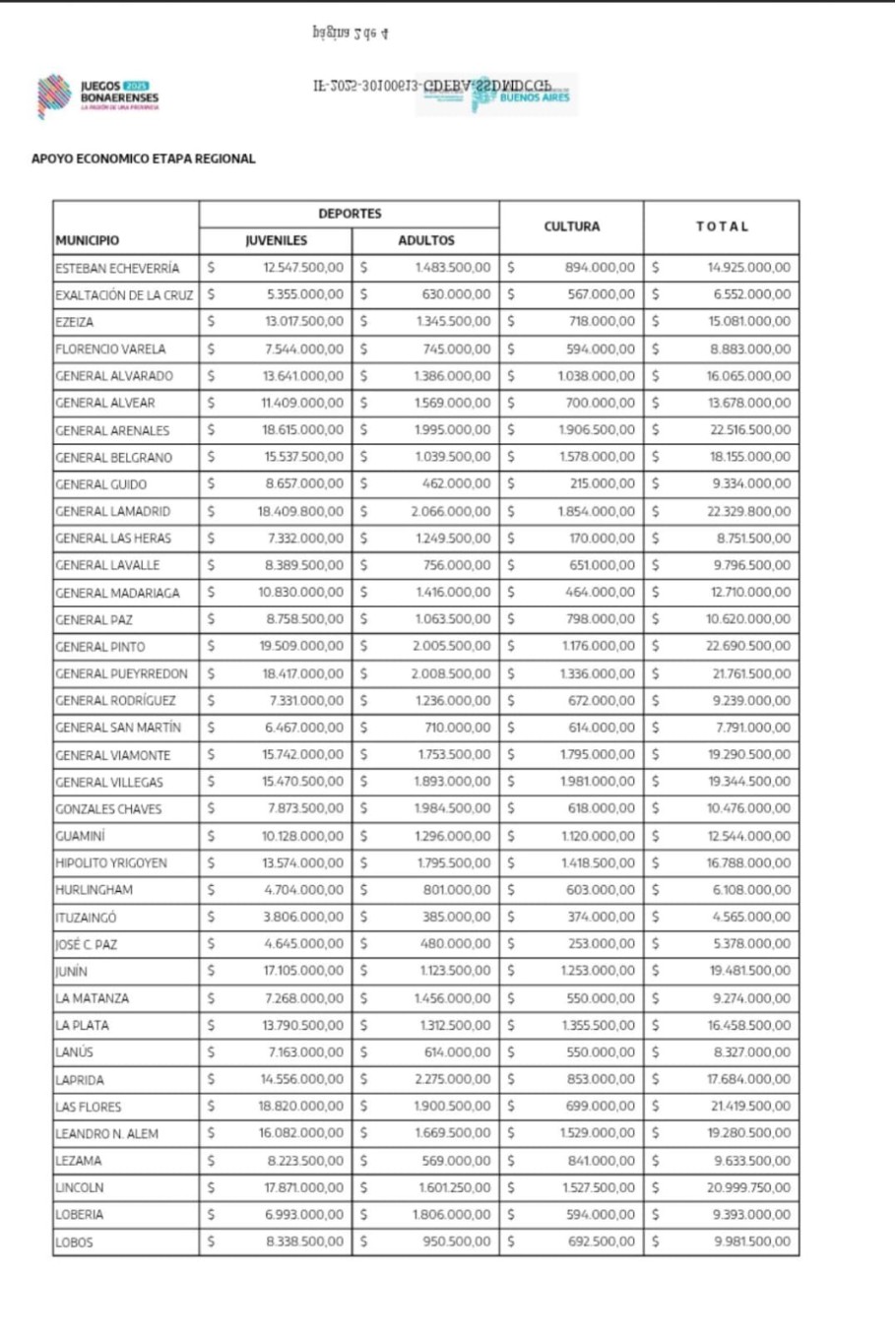 El Gobierno de Axel Kicillof aprobó la transferencia de aportes no reintegrables por un total de $1.933.238.010 a los municipios bonaerenses, con el objetivo de solventar la Etapa Regional de la 34ª edición de los Juegos Bonaerenses, cuya Final Provincial será en Mar del Plata, del 12 al 17 de octubre.